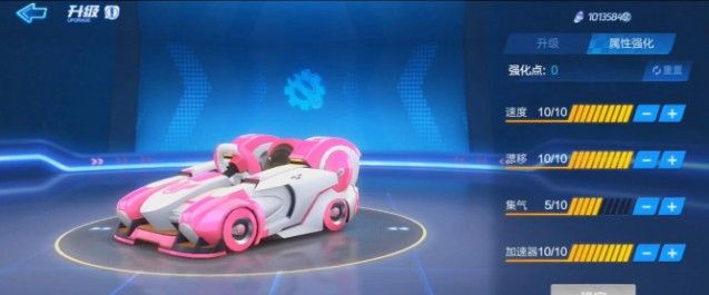 在漂移,加速度方面稍微的差点,不过加速时间和集气速度,加点建议速度,漂移,加速道具点满,集气5点即可完美加点。