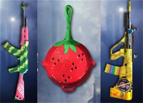 同时,本季的道具皮肤也一改过往冷峻、霸气的风格,呈现出了十足的小清新气息。AKM摇身一变成为“冰凉西瓜”、DP28被“清新柠檬”附体、蝎式手枪成为“欢乐香蕉”、AUG秒变胖胖的“甜蜜菠萝”,就连平底锅都从黑不溜秋的形象成为可爱的“火吻草莓”!