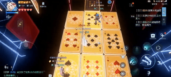 在“挑战难度”里,站在扑克牌上会有一个造成伤害的红色危险范围,伤害也不低,所以不要没事站在上面玩以至于造成不必要的损失之后会有几张扑克牌的正面翻过来,之后解密会要求站在正确的扑克牌上,这里提供两个快速解密方法: