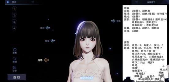 想要一双明亮的大眼睛就必须要调整眼睛的大小,其次是调整眼睛内外眼角的位置。一般外眼角都会上扬一些,内眼角上扬会显得柔和,下拉会显得有魅力,玩家自己取舍。嘴巴的话可以选择上下嘴唇厚度,但一般来说上嘴唇要薄于下嘴唇才会更好看哦!嘴角的弧度也要调整,喜欢微笑唇的就一定要上扬,喜欢高冷御姐范的话就保持水平就好。嘴唇最好不要下拉,这样会显得很凶。其他数据玩家按照常规来调整就好。