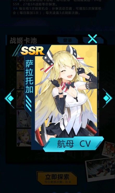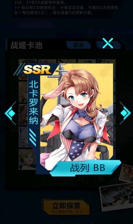 技能很普通,但是身为航母就是牛逼,签到7天送一个,6-4可以捞,由于6-4有一定的难度,所以