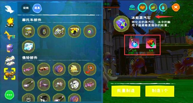 在载具制造台--道具分类中,可以把冰魄和蒸汽石合成冰能蒸汽石。