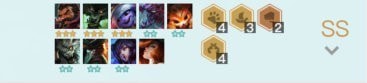 图上基本就是获胜的标配阵容了,因为卢锡安三星了所以就没把他换掉,如果在实战中卢锡安只是两星的话可以把他换掉凑个三变形或者加个精英单卡提升整体战力。