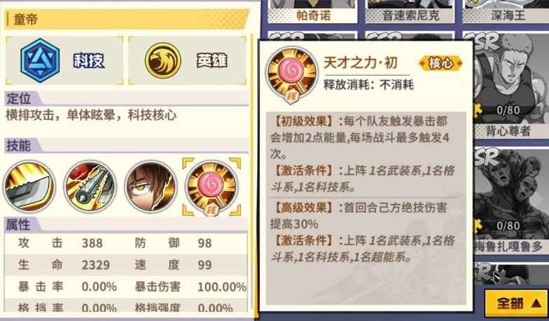 除此之外,童帝也能获得暴走效果,不过他也有自己的核心技能,不在此介绍了,而且也难抽到。。。