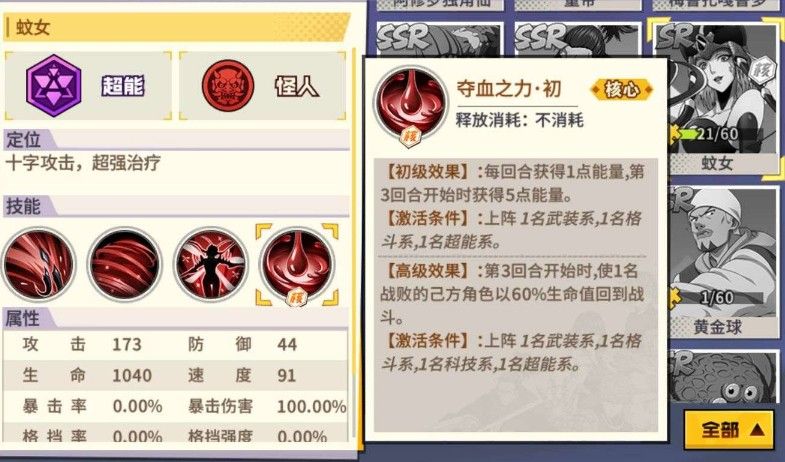 蚊女是除了杰诺斯以外,可以有稳定的获得碎片渠道的角色,通过刷副本累计碎片,平民玩家也可简单的获得。