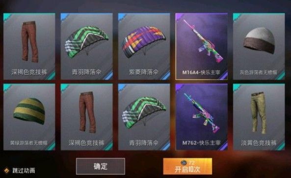 可以看到粉色物品掉率只有仅仅0.5%,也就是说获得快乐主宰人物皮肤的概率非常低,不过好在枪械皮肤都是紫色品质,想要获得M416皮肤应该还是比较简单的。