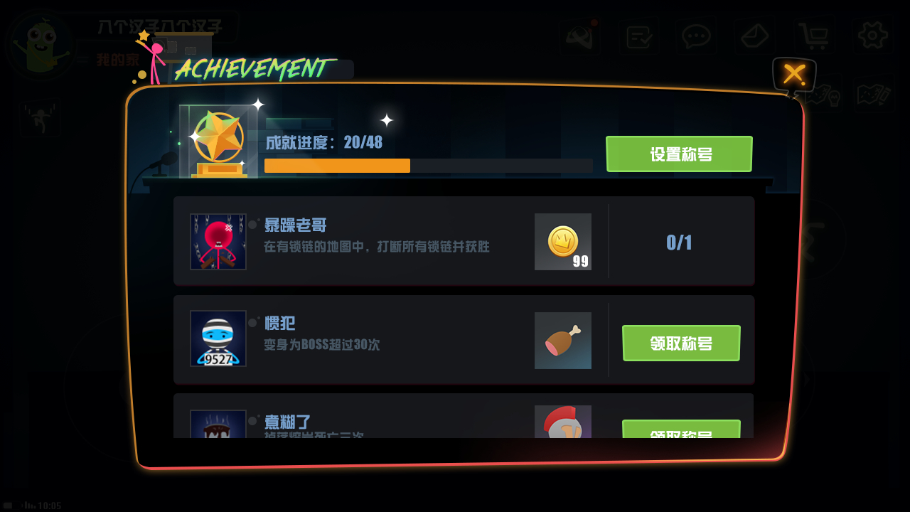 成就系统则囊括了多种令人捧腹的设定。比如,击杀大厅NPC超过10次,玩家将收获一枚“冷酷无情”的认证。而奖杯系统,则是每一个玩家的游戏记事本,记录火柴人从零开始,步步成长的历程;同时,为体现竞技精神,奖杯系统将为玩家解锁更多技能,让强者更强!