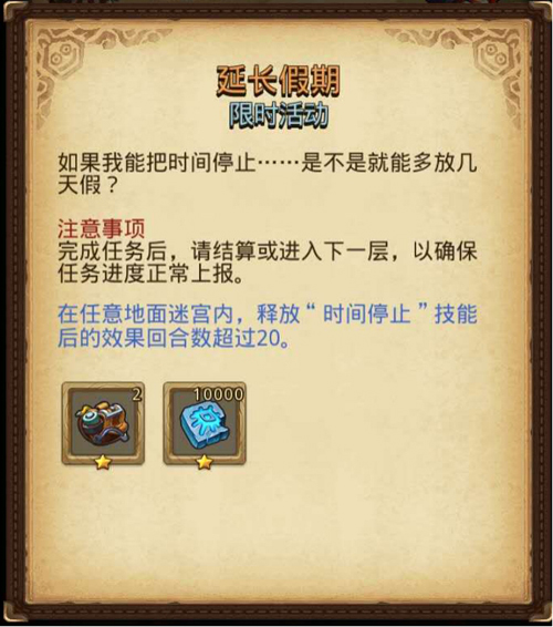 任务内容:在任意地面迷宫内,释放“时间停止”技能后的效果回合数超过20。