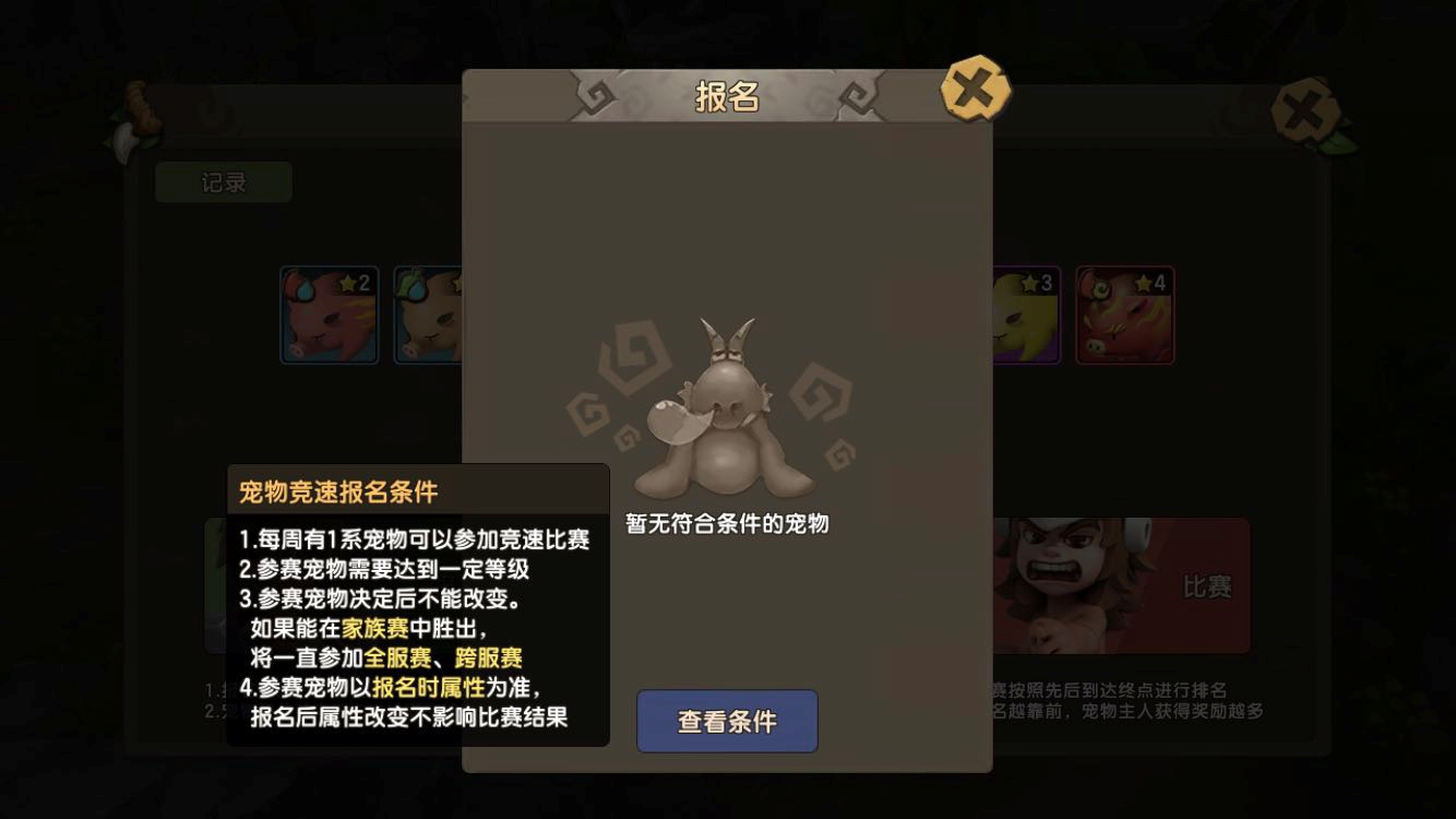 ①玩家在报名参加宠物竞赛,需要拥有该系别的宠物,且满足报名的等级要求;
