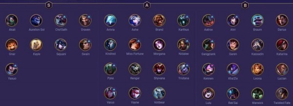 推荐S级英雄:阿卡丽、龙王、科加斯、德莱文、纳尔、天使、猪妹、乌鸦、亚索