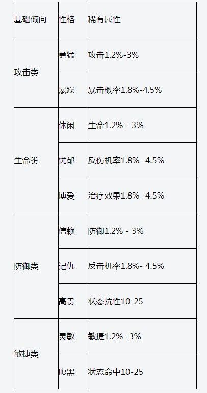当宠物达到Lv.55级开启宠物性格。目前游戏里宠物的性格一共有10个,每个性格都有自己的属性,具体如下: