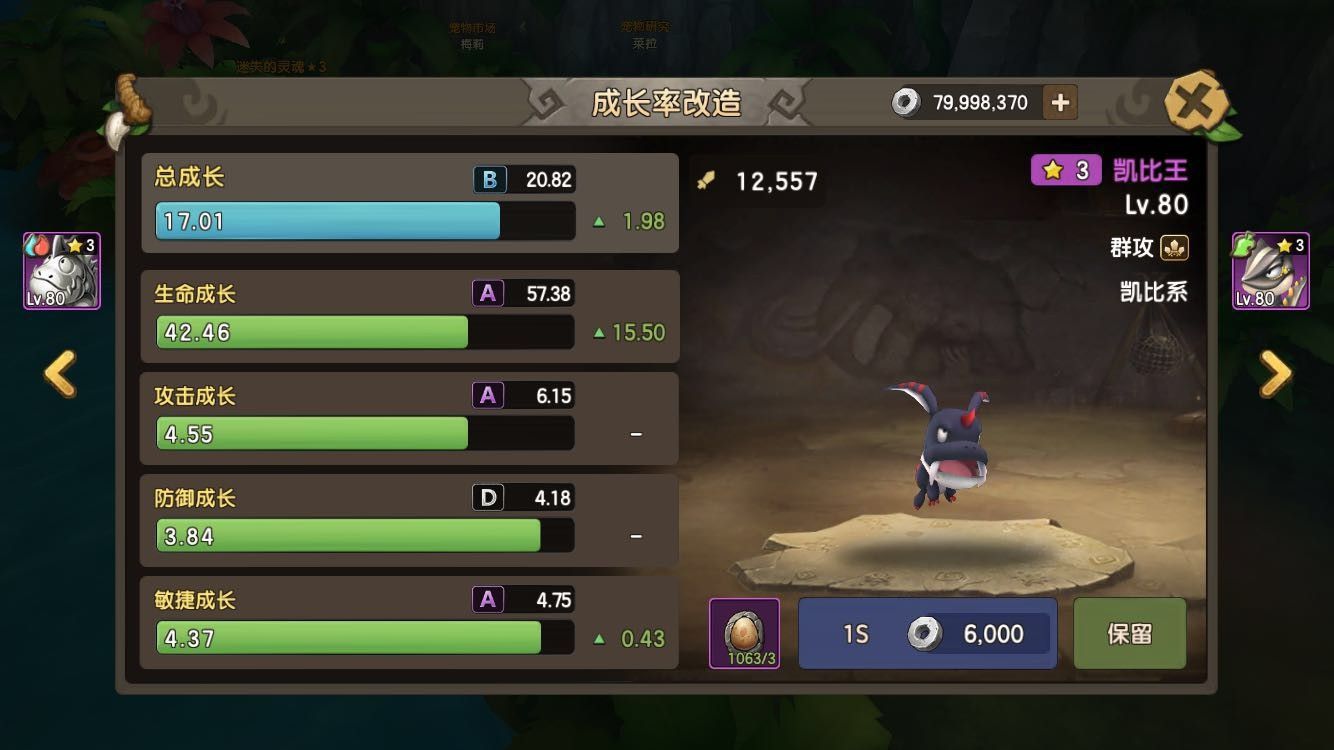 改造后,系统会对宠物的4项成长进行重新改造,改造后的各项成长会在对应成长上限范围内随机浮动,可能是增长,也有可能是降低。当改造出比之前高的总成长率,玩家可以选择保留,保留后将获得新的成长值。