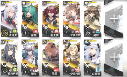 突袭5-10:银灰,艾雅法拉,伊芙利特,星熊,白面鸮,夜莺,洁哥,火神。