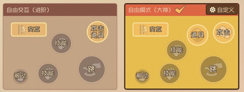 随后,小伙伴们就可以基于目前官方给到的4种按键模式,进行自定义按键配置了。凡是在游戏界面中的常驻UI,大家都可以自主进行移动位置和大小调整的修改哦。