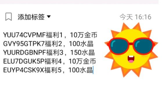 兑换码奖励:两个100水晶、两个150水晶