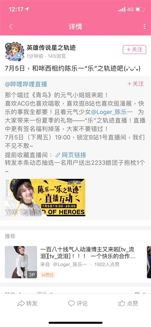 轨迹15周年献礼之作《英雄传说:星之轨迹》即将上线(7月3日ios版本上线,7月5日全平台公测),目前官方已经公布了公测时间,游戏优化和丰厚奖励等。6月29日,歌手陈乐一表示即将与《星之轨迹》项目合作,演唱轨迹系列经典曲目《星之所在》。7月5日,陈乐一还将在B站带来“乐之轨迹”直播,一起期待吧~