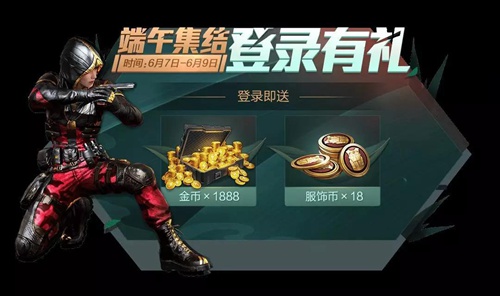 各位特种兵为自己阵营辛苦打call的同时,在6月7日-6月9日端午节日期间,只要登录游戏即可领取1888金币和18服饰币!