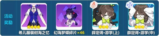 2)本次主线活动中,女武神、装备、圣痕的获取与强化将与正式游戏独立,并设有独立活动等级。舰长可通过主线十一章关卡获取活动经验,提升活动等级并获取等级线奖励。提升活动等级可获取希儿服装「绀海之忆」、「幻海梦蝶」角色碎片、「薛定谔·游学(上)」、「薛定谔·游学(中)」等丰厚奖励!