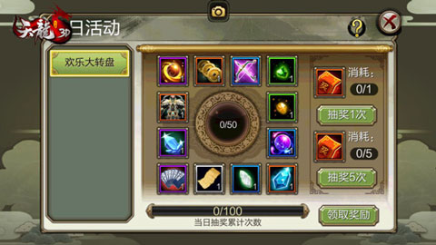 转盘中包含占卜铜钱、卦象部位转化符、高级教育道具、玉辉石等丰厚奖励。良心抽奖,也绝对不会让你的祝福券打水漂!在转盘抽奖过程中,抽中普通奖励可以获得1点能量值,累计50点能量值,下次抽奖必定获得永久时装【妖猫传】。抽中稀有奖励时,能量值重置为0点。当日抽奖达到一定次数还可以在“累计领奖”界面领取额外奖励。