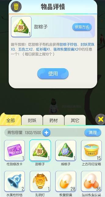 除了两种铃铛之中还有甜咸粽子两种不同的补给,玩家在活动期间只要捉妖就有概率额外掉落粽子(每日上限10个)。