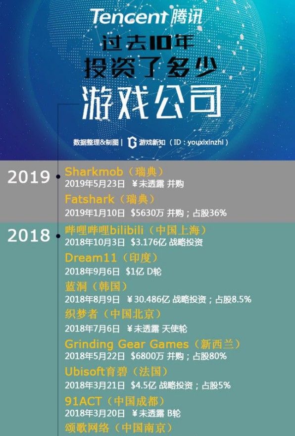 2008年至今十年,腾讯到底投了多少家游戏公司?
