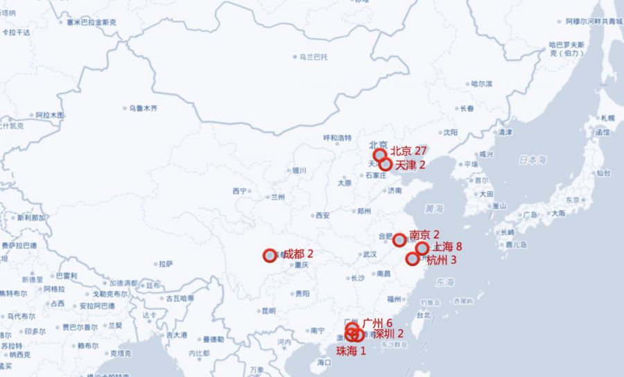 腾讯在国内的投资集中在9个城市,北上广深占81%。