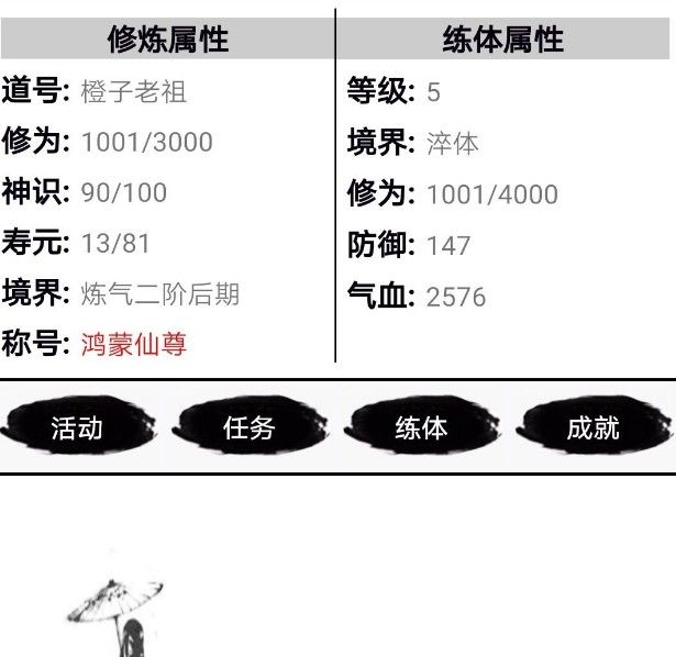 3、然后进造化玉蝶,管他三七二十一,先点修炼啊!修炼了可以退出了,下次进的时候也可以收功的!目前这个版本的,加了练体玩法,练体是普通升级的双倍气血和防御加成…当然最练到最高境界,化神都打不过你!所以先把练体升到10级!然后就去活动里面签到,游历!又赚一波灵石和修为!