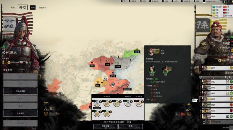 然后过几回合找孙坚联姻孙策,这就得花点钱财了,不贵,招上门女婿。