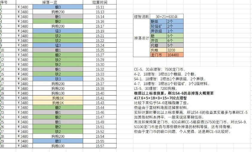 它呢是研究S4-9的,即狗粮的掉落,结论是长时间刷收益高于LS-5+其他材料本。