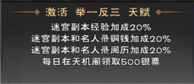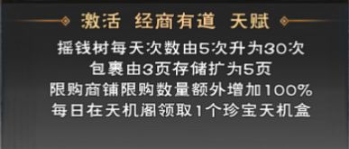 分析:银票是江湖核心资源;经验每日获取有限,快速发展离不开门派任务和迷宫副本的经验加成;提前解封技能格能短时间内高效提升战力;珍宝天机阁貌似能开出来元宝(平时只有充值获得);洗髓冲穴和悟道是氪金大佬玩儿的东西。综上所述,天赋建议获取顺序为: