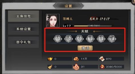游戏界面左上角,“设置”图标进入主角信息界面,这里有六大天赋的介绍,因为未开服,已知的获得方式为氪金+活动(攻略和问卷等),具体获取方式以开服为准,目前只分析优选先后顺序,开服后如有变化再更新: