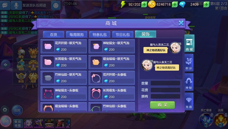 需要注意的是,每位领主每天最多可通过所有小游戏获得5次积分,小游戏积分可在积分商城中兑换“游我所乐”头像框。此外,诸位领主还可以使用钻石在商城的装饰分页购买“花开阡陌”、“神秘猫女”等聊天气泡及头像框,装扮个性化专属人物形象。