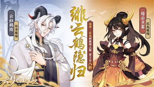 白泽上线的同时,《云梦四时歌》还带来了全新的符灵服饰,分别是云归鹤隐-白泽和绯云夕雾-应龙,并且两款新服饰都是限时特价售卖,机不可失。云归鹤隐加身的白泽仙气飘飘,而穿戴绯云夕雾的应龙,高贵气质更胜一筹。说到应龙,不得不说这个注册后完成七日任务就能获得的符灵,不仅英气逼人,深受广大玩家喜爱,更是一个非常优质的成长献祭类符灵,也就是俗称的“狗粮队长”。