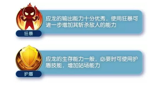 总体上来说,应龙的输出能力十分优秀,但生存能力相对而言略显一般。因此,我们可以根据实际情况,选用狂暴或者护盾来“扬长”或“避短”: