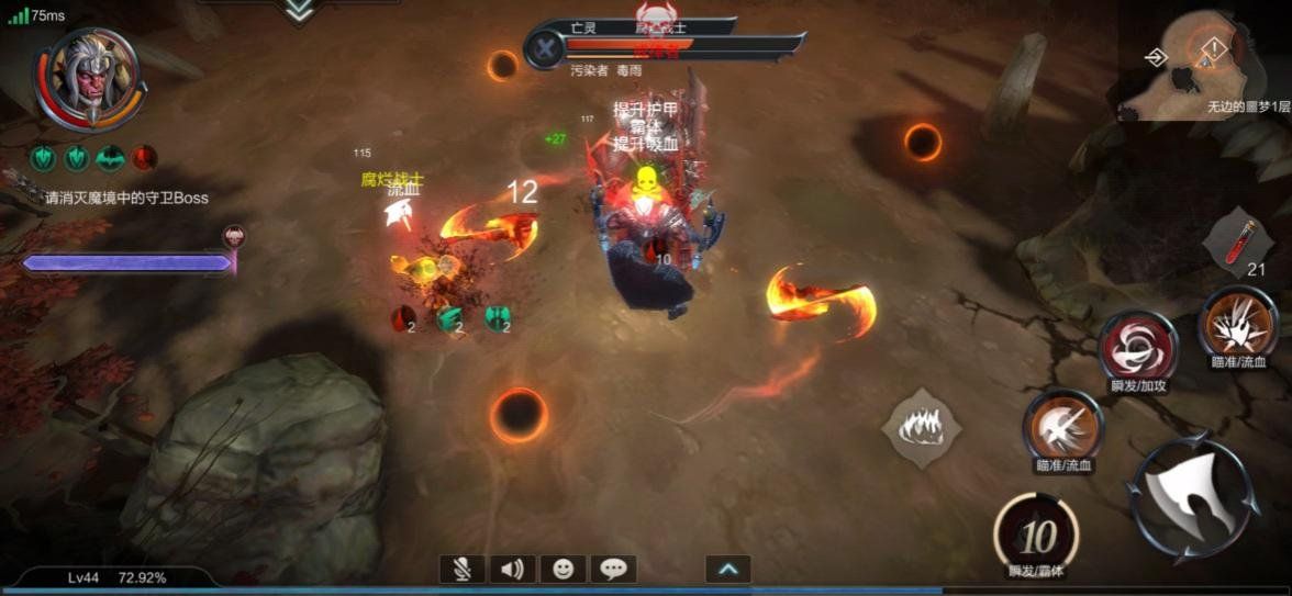 倘若你是一名很喜欢“刷刷刷”的玩家,又不能在剧情模式得到满足,那么你可以来尝试一下“阿比斯魔境”模式。在该模式下,你仅有击杀蜂拥而至的怪物,并积累计量槽这一个目标,在计量槽满格后,你所在的区域将会出现的最终boss。在此期间,怪物会掉落各式各样的素材可供强化。阿比斯魔境的挑战层数没有限制,每层之间怪物伤害数值的提升也是较为明显的。