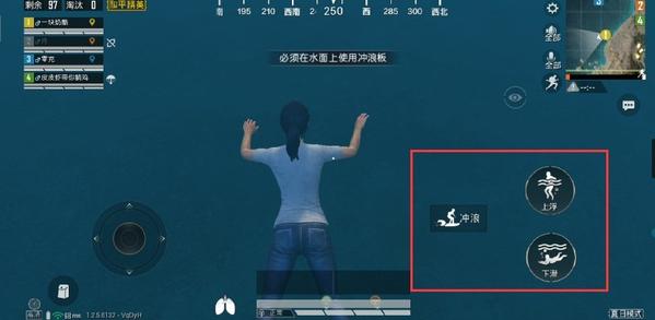 既然是冲浪板,那就必须要在有水的地方才能使用。当玩家处于陆地、浅水区域和浅水状态时时不可以进行使用的。当玩家处于水面上的游泳状态时就会发现在屏幕上有“冲浪”的图标文字提示。玩家点击该图标就可以处于冲浪状态。当玩家“冲上”陆地时或手动选择“下车”,冲浪板就会自动收纳起来。
