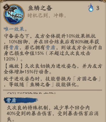 久次良可为队友叠加护盾、恢复生命与加速行动条,十分好用呢~~~~~