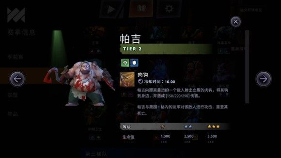 亡灵(无情)战士,2块钱,刀塔霸业新卡,新版战士霸主,超高血量成长,2星便拥有2500点血量,3星更是拥有了5500点血量,技能为把最远的一个敌人勾到身旁造成伤害(此技能必中,不会被英雄挡勾)同时触发集火(使周围友军强制攻击目标),必拿,追3。