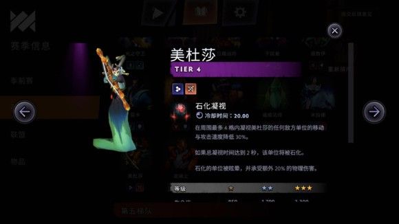 娜迦族(鳞族)猎人,4块钱,所有猎人阵容核心,没有美杜莎,你就玩不了猎人,普攻为分裂箭,普攻为分裂箭,普攻为分裂箭,重要的事情说三遍,技能还是石化凝视,强无敌!必拿,太贵不推荐追3星,如果经济很好,一姐又老来可以追3。