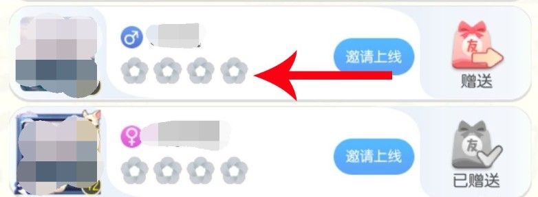 亲密度的图标为梅花,它象征着友谊,用它可以很好的体验好友之间的友谊之情。同样在每个好友名字下方都有四个灰色的梅花图标,需要好友互动才能获取亲密度点亮梅花哦~