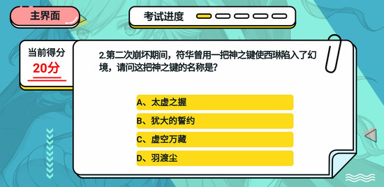 崩坏3崩坏考试理论周已经开始我们的考试了,本次考试的科目有5们,每3天会开始新的科目的考试,今天给大家来说说这次考试的全部答案,想要满分的同学看过来!