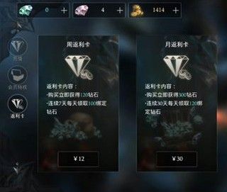 小编个人觉得在游戏中肯定是月返利卡更加划算一点,而月卡虽然名字叫做月卡,但是其实只是会员的一些特权,主要是提供世界疲劳的加成,金币的掉落率,签到奖励2倍,而月返利卡则是每天都可以获取120绑定钻石,购买立刻入手300钻石。
