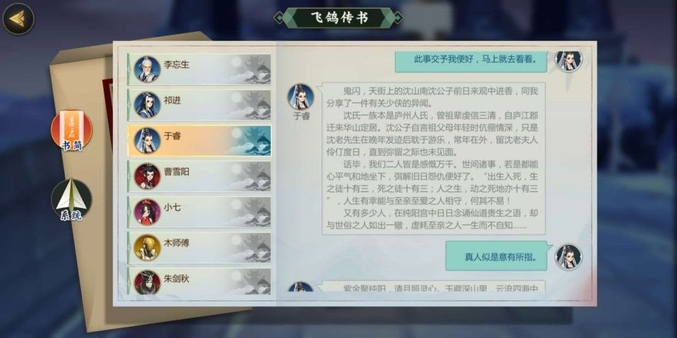 剑网3指尖江湖于睿回信攻略 于睿回信选择推荐