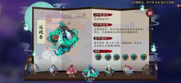 之前有说雨女对御魂的要求不高,所以其基本上什么御魂都可以带,但其主要会用于斗技,所以可以选择像返魂香、木魅等斗技类辅助御魂。