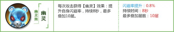 作为队长,幽灵熊不太适合,不过可以升级作为出战宠物,它和幽魂的生命值加成是A级宠物里面最高的。在没有足够SSS和S的情况下,幽灵熊是不错的出战选择。