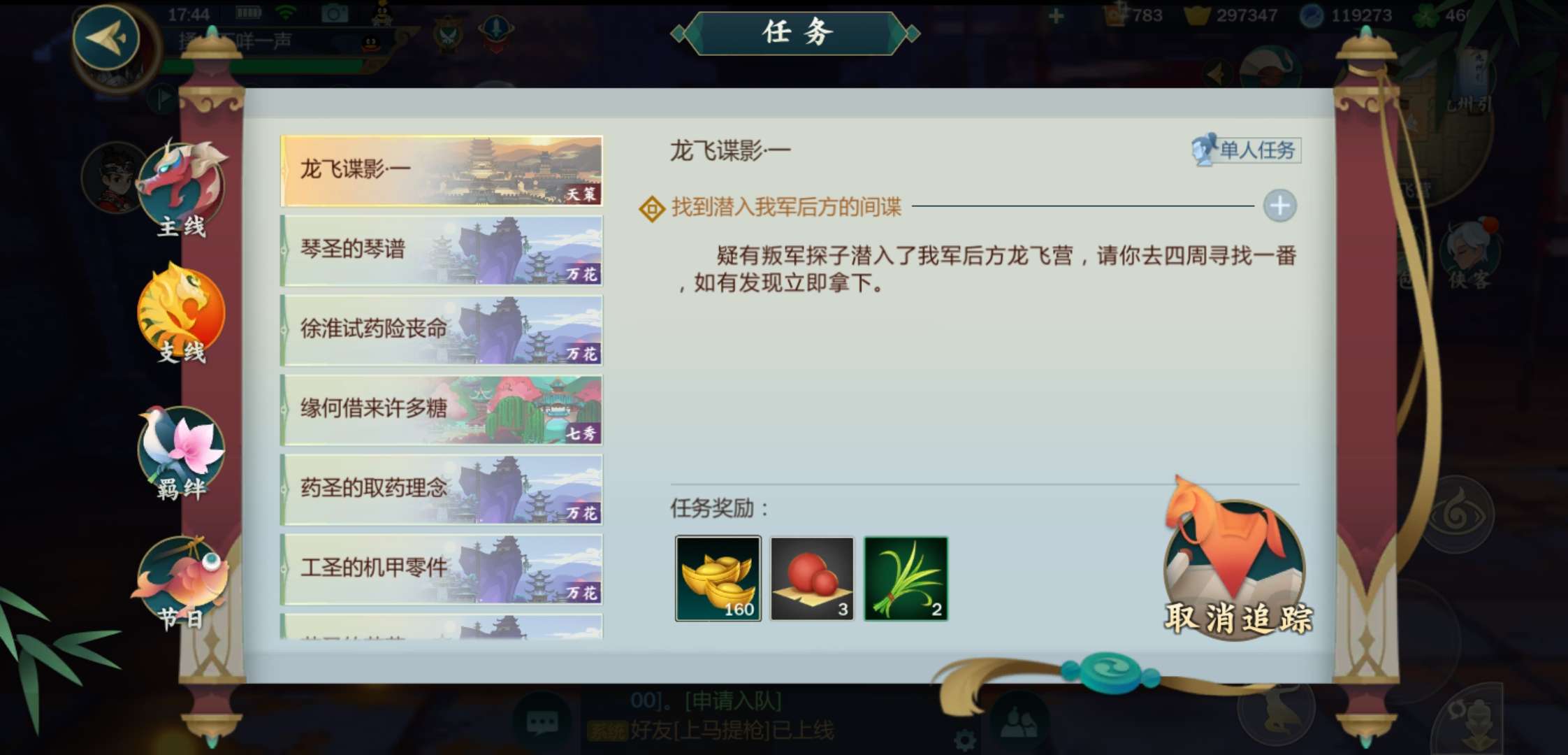 需要注意的是玩家接了任务之后,需要手动跟踪任务,另外就是记得把天策的主线做完可以接到任务。