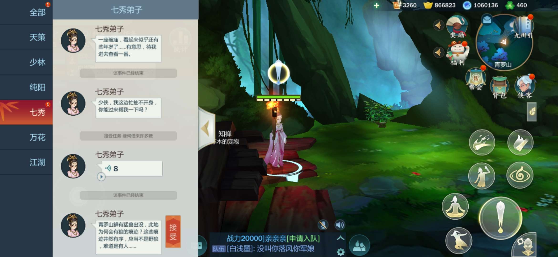 (多亏了黑莓大佬我才能拿到心爱的绯心@黑莓)七秀门派主线完成后到青萝山(图1标记位置),手拿火把在图2的位置就可以开始进密室了,视频是七秀弟子开密室的解锁方法,进去后逛一下就会触发图4的任务,完成任务就能获得