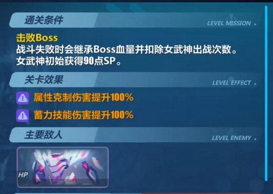 普通关卡通过检查点后会扣除女武神使用次数,武器和圣痕依然会被锁定,BOSS关卡女武神入场初始自带90SP,减小了通关压力。
