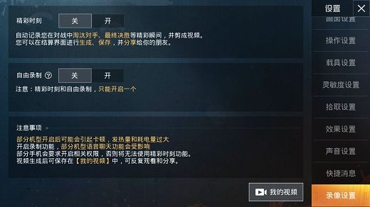 部分的机型开启后会可能引起卡顿,发热量和耗电量过大的问题,开启录制功能,部分机型语音聊天会受到影响。部分手机要求开启特殊的权限,否则将无法使用精彩时刻功能,视频生成后可以保存在我的视频中,可以反复观看。