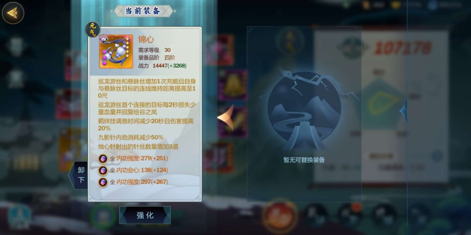两个散件则根据个人爱好提升属性,毕竟极品散件的属性比牌子装要好。谷之岚主属性是元气,主要堆元气和内强,辅以会心会效即可,有谷之岚的词条更佳。过于追求极致就会很费钱,个人觉得没必要。